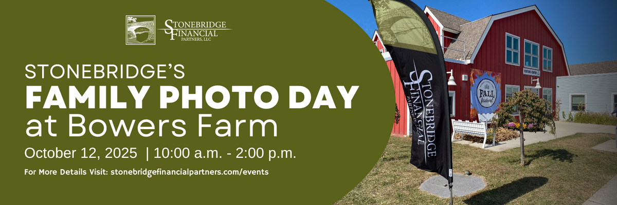 Join Stonebridge Financial Partner's at this year's Family Photo Day. You'll enjoy hayrides, cider, donuts, exploring the pumpkin patches and a family photo shoot.
